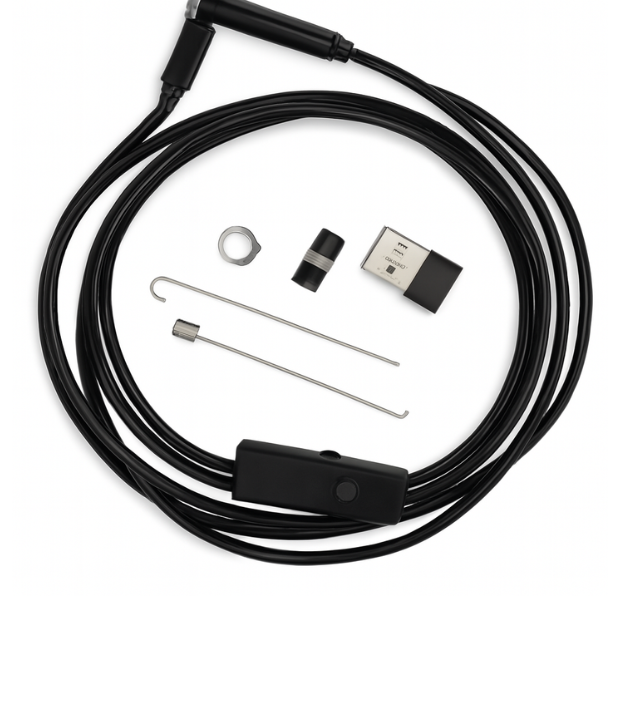 - Visión Profunda de 1 Metro: Cable semirígido de 1 metro de longitud, diseñado para serpentear a través de espacios estrechos, permitiendo inspeccionar cilindros, cárteres, líneas de cableado y otros rincones sin necesidad de desmontar.