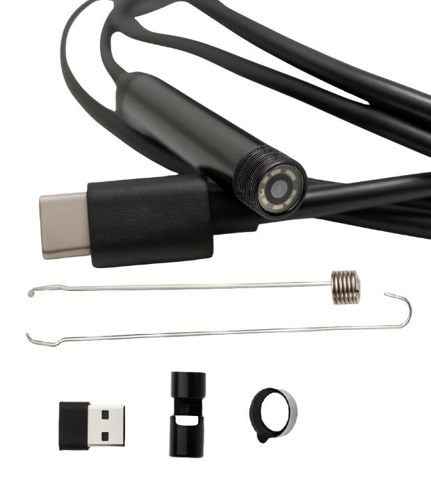 - Iluminación LED Graduable: La punta de la cámara incorpora luces LED ajustables que eliminan sombras y garantizan una imagen nítida incluso en los entornos más oscuros del motor. Controla la intensidad de luz desde el cable.