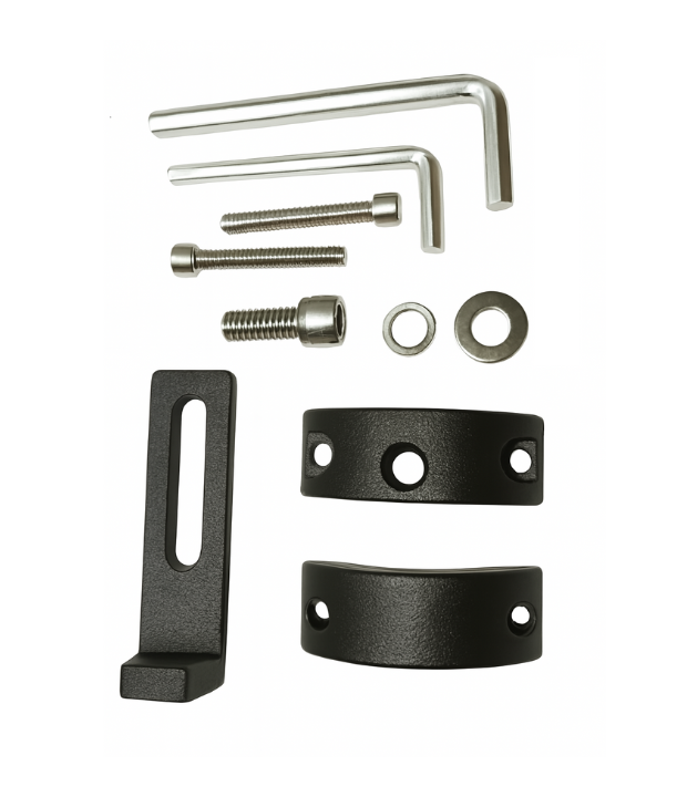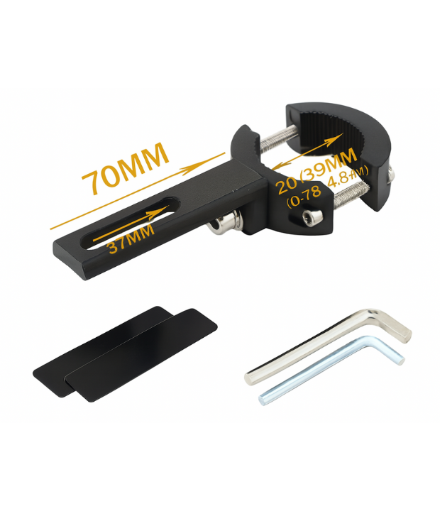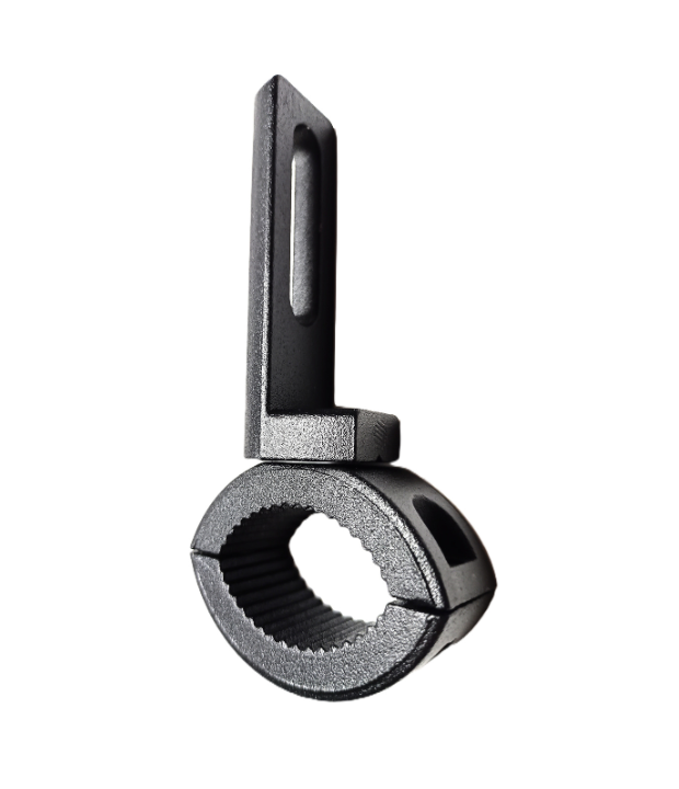 - Adaptabilidad Extrema: Ideal para manillares, barras de defensa, sliders o cualquier tubo. Acepta accesorios de perforación vertical y horizontal gracias a su diseño ranurado en el brazo.